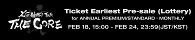 <<XG WORLD TOUR: THE CORE>>Japan Additional Performance – ALPHAZ ANNUAL PREMIUM/STANDARD/MONTHLY Members Exclusive Ticket Earliest Pre-sale (Lottery) starts Wednesday, February 18 at 3:00 PM